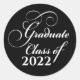 Elegant white and black graduation sticker to attach to graduation announcements,graduation party imitations,save the date and other graduation paper correspondence. Perfect for the graduating Class of 2022. Elegant script style font.