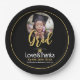 Elegant Graduation gold Cap Thanks Script Photo Paper Plate