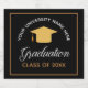 These elegant black and gold custom college graduation party wine labels feature classy white typography under a university grad cap for the class of 2025. Customise with your graduating year under the chic calligraphy.