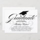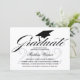© Socialite Designs. Our elegant script / calligraphy "graduate" text and graduation cap, with black text on white background, add a touch of simple elegance to this graduation invitation. The background has a subtle grey year of graduation watermark. The back of the invitation has an elegant ornament design with "Class of" and year text. Easily replace our template text for your special event.