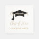 Elegant Graduation Party Napkins. These chic grad cap congrats graduation napkins are perfect for a modern graduation party. The simple design features classic minimalist black and white typography with a black and gold watercolor graduation hat.