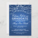 Elegant Graduation Party Sparkling String Invitation template Blue . Impress your friends with this classy graduation invitation design. Fully customisable!