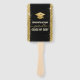 Personalised custom printed paper fan with handle featuring your graduate's photo and script monogram name and any year "class of 2025" text and an elegant black and gold faux glitter design. The fans are perfect for outdoor graduation ceremonies, awards, open house, and graduation party.