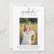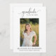Announce your graduate in style with this elegant personalized graduation photo invitation featuring a modern script “graduate” header and classic black-and-white layout. Perfect for high school or college graduation parties, open houses, and senior announcements, this invitation is fully customizable with the graduate’s name, school, class year, and event details. A timeless design that pairs beautifully with modern, minimalist, or formal graduation decor.