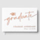 White or custom colour graduation guest book featuring the text "graduate" in an elegant script font with a graduate cap above. The graduate's name and year are printed in the bottom right corner.