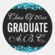 Elegant Graduation Turquoise Lights & Sparkles Classic Round Sticker