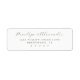 This elegant label features a clean, minimalist design with ample white space and a muted gray color palette. The typography combines a flowing cursive script for the names at the top with a classic serif font for the address and contact details below, creating a sophisticated and formal look. Perfect for weddings or significant events, this label exudes timeless elegance and clarity, making it ideal for personalizing invitations or special occasion stationery.