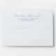 This wedding envelope features a minimalist and elegant design with a clean white background. The layout includes a flowing cursive script for the names, paired with a simple sans-serif font for the address, creating a sophisticated contrast. The dark gray color palette enhances readability while maintaining a timeless look. Perfect for couples seeking a refined and modern aesthetic, this envelope combines style and functionality seamlessly.