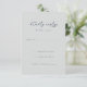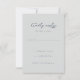This wedding RSVP card features a minimalist design with a soft, muted gray background that creates an elegant and sophisticated look. The layout is centered and vertically aligned, offering ample negative space for a clean appearance. It includes customizable fields for names and responses in a mix of flowing script and clear sans-serif fonts, ensuring both style and readability. Perfect for formal events, the card conveys a tone of respect and consideration while maintaining simplicity and functionality.