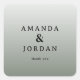This square sticker features a minimalist and elegant design with a gradient gray background that transitions from light to dark. The layout centers on two names in classic serif typography, separated by an ampersand, conveying a formal and sophisticated feel. Below the names, "thank you" is written in a simple sans-serif font, adding a touch of gratitude. The overall mood is understated sophistication, making it ideal for personal acknowledgments or special occasions where appreciation is key.