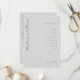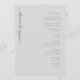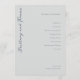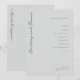 This wedding program features a minimalist and elegant design with a light gray background, creating a sophisticated aesthetic. The layout is clean and organized, with the names "Brittany and Thomas" written in flowing cursive on the left side, while the right side lists the ceremony events in a structured format using serif fonts. The color palette consists of dark gray text that contrasts subtly against the pale background, enhancing readability without distraction. Perfect for couples seeking a modern and refined look, this template offers customizable placeholders for personal details, making it ideal for formal weddings.