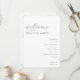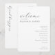 This wedding program features a minimalist and elegant design with a clean white background, creating an airy and sophisticated atmosphere. The layout includes flowing cursive script for the welcome message, bold serif fonts for the names, and simple sans-serif text for the ceremony details, ensuring readability while maintaining a modern aesthetic. The generous spacing between elements allows each section to breathe, emphasizing clarity and focus on the important details. Perfect for couples seeking understated elegance, this design conveys a refined mood suitable for formal weddings.