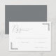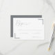 This elegant wedding RSVP card features a minimalist design with a clean, white background and grayscale tones. The layout is simple yet sophisticated, with ample white space that highlights the crisp lines and smooth gradients of the digital illustration style. Decorative corner accents add subtle elegance, while the typography combines an elegant script for "RSVP" with a straightforward sans-serif font for clarity. Perfect for formal occasions, this card conveys an understated sophistication, making it ideal for capturing guest responses in a stylish manner.