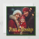 Capture the heartwarming joy of the holiday season with our Elegant Green and Gold Script Photo Christmas Greeting Card. This exquisite card is the perfect canvas for your cherished family photo, framed by a rich green border accented with tasteful gold geometric patterns. The front features a golden script that reads 'Peace & Blessings,' setting a tone of heartfelt sentiment and festive cheer. The customisable design allows you to add a personal touch, whether it's your family name or a special holiday greeting, making it a unique keepsake for friends and family.