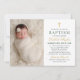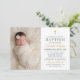Elegant Green and Gold Floral Photo Baptism Invitation