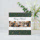 Custom green and gold photo Merry and Married Christmas cards featuring a star pattern on a dark green background with 3 photos in the middle and a beautiful hand-lettered script title above. Easily personalise this elegant Christmas card with your images, text, and your family name.
