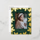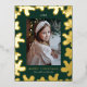 Elegant Green and Gold Pine Frame Photo Foil Holiday Postcard