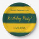 Elegant Green And Gold Stripes Modern Birthday Paper Plate