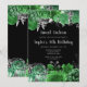 Elegant Green and Silver Flowers Sweet Sixteen Invitation