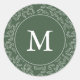 Elegant Green and White Holly Monogram Holiday Classic Round Sticker
