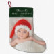 Elegant Green Baby Photo Custom Name Small Christmas Stocking