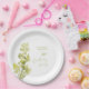 An elegant 30th birthday party paper plates featuring a green botanical watercolor on a white background.