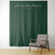 This elegant wedding backdrop features a rich, dark green background with a sophisticated script font for customizable names and dates. The minimalist design emphasizes clarity and luxury, making it perfect for formal events like weddings or anniversaries. Its modern yet classic style creates an intimate and dignified atmosphere, ideal for celebrating significant life moments. The ample negative space ensures the focus remains on the personalized text, enhancing its timeless appeal.