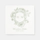 Elevate your special day with our elegant, vintage Baroque-style wedding cocktail napkin, a masterpiece of timeless elegance. Featuring a delicate French sage green chinoiserie crest with delicate line art flowers and a bird on a pristine white background, this design exudes classic charm and sophistication. Its simplicity highlights its refined details, creating a design as graceful as your love story. Perfect for those who cherish tradition and elegance. Created by Simply Farmhouse Press.
