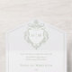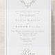 ALSO AVAILABLE WITH OR WITHOUT DINNER CHOICES. Elevate your special day with our elegant, vintage Baroque-style wedding invitation, a masterpiece of timeless elegance. Featuring a delicate French sage green chinoiserie crest with delicate line art ribbons and filigree on a pristine white background, this design exudes classic charm and sophistication. Its simplicity highlights its refined details, creating a design as graceful as your love story. Perfect for those who cherish tradition and elegance. Created by Simply Farmhouse Press.