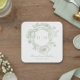 Elevate your special day with our elegant, vintage Baroque-style wedding coaster, a masterpiece of timeless elegance. Featuring a delicate French sage green chinoiserie crest with delicate line art flowers and a bird on a pristine white background, this design exudes classic charm and sophistication. Its simplicity highlights its refined details, creating a design as graceful as your love story. Perfect for those who cherish tradition and elegance. Created by Simply Farmhouse Press.