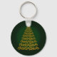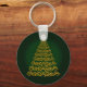 Get into the holiday spirit with this elegant gold tree key chain with a green background.