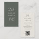 Elegant Green & Cream Botanical QR Code Vertical Business Card