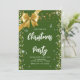 Elegant green diamond, golden ribbon, confetti invitation