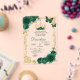 Elegant Green Emerald Crown Quinceanera Acrylic Invitation, Emerald Green Floral with Gold Victorian Borders & Tiara Quinceanera Acrylic Invitation, Green Floral Gold Tiara Mis Quince Anos XV Invitaciones de Acrilico