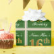 This simple and elegant wrapping paper design features a personalised message like "Name-Here’s 16th Birthday" (with the "16th" having a faux/imitation gold-like colouring look) within a green-coloured square area featuring a simple border outline. The name is in an elegant white-coloured script-like text, and can be customised. Wrapping paper like this could perhaps be used when wrapping birthday gifts for somebody who is celebrating their sixteenth birthday. [~Z0000219]