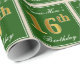 Elegant, Green, Faux Gold 16th Birthday + Name Wrapping Paper