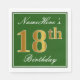 Elegant Green, Faux Gold 18th Birthday + Name Napkin