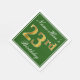 This simple and elegant paper napkin design features a message like "Name-Here’s 23rd Birthday" (with the "23rd" having a faux gold-like colouring) within a green-coloured square area featuring a simple border outline. The name is in a white-coloured script-like text, and can be customised. Napkins like these could perhaps be used at a birthday party for somebody who is celebrating their twenty third birthday. [~Z0000137]