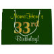 Elegant, Green, Faux Gold 33rd Birthday + Name Large Gift Bag