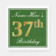 Elegant Green, Faux Gold 37th Birthday + Name Napkin