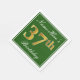 This simple and elegant paper napkin design features a message like "Name-Here’s 37th Birthday" (with the "37th" having a faux gold-like colouring) within a green-coloured square area featuring a simple border outline. The name is in a white-coloured script-like text, and can be personalised. Napkins like these could perhaps be used at a birthday party for somebody who is celebrating their thirty seventh birthday. [~Z0000137]