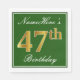 Elegant Green, Faux Gold 47th Birthday + Name Napkin