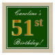 Elegant, Green, Faux Gold 51st Birthday + Name Poster