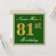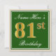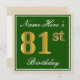 Elegant, Green, Faux Gold 81st Birthday + Name Invitation