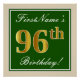 Elegant, Green, Faux Gold 96th Birthday + Name Poster