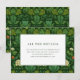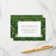 This elegant wedding enclosure card features a lush, botanical design with a dark green background adorned with stylised floral illustrations in lighter shades of green and cream. The central white bordered area provides a clean space for text, using bold serif fonts to highlight key details while maintaining an overall vintage theme. The asymmetrical layout adds a touch of sophistication, making it perfect for formal announcements. The muted yet rich colour palette evokes a sense of calm and refinement, ideal for conveying grace and anticipation on your special day.