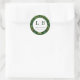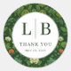 Elegant Green Floral Initials Classic Round Sticker