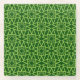 Green geometric pattern with interlocking star and diamond shapes on a dark green background. The design is intricate and symmetrical, conveying harmony.