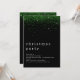 Elegant Green Glitter Confetti Christmas Party Black. The header is large in stylish lowercase with the details beneath. Lots of space for a contemporary feel and a border of confetti style green glitter at the top on both sides. Easily personalise the text to your own details.