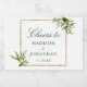 Cheers to Love. This elegant custom botanical wedding mini champagne bottle label is framed with beautiful green watercolor leaves and pretty olive vines. This lovely greenery favour is perfect for a chic fall event for a modern bride and groom. Framed with a lovely gold square behind the green leaf accent.